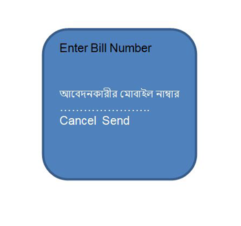 নিম্মোক্ত মেনু হতে Enter Bill Number এ আবেদনকারীর মোবাইল নাম্বার টাইপ করে SEND দিন।