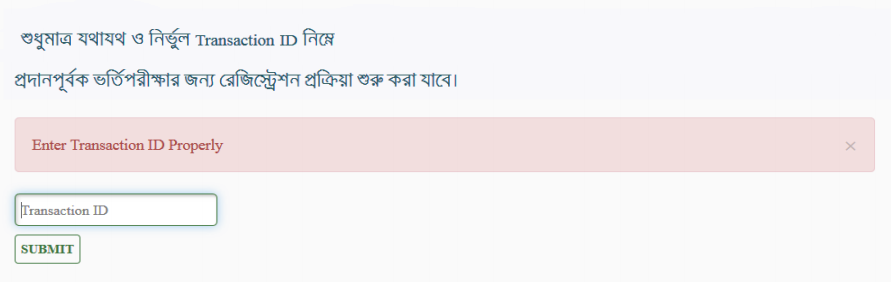 SMS এ পাওয়া Transaction ID যথাযথ ও নির্ভুলভাবে admission.ciet.ac.bd ওয়েব সাইটের আবেদন বাটনে কিক্ল করে নিমোক্ত বক্সে প্রদানপূর্বক আবেদন ফরম পূরণের প্রক্রিয়া শুরু করা যাবে।